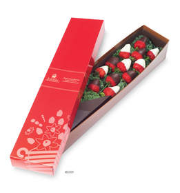 Inspired by the beauty of long-stemmed roses, Edible Arrangements Berry Chocolate Roses are a clever alternative to traditional Valentine’s Day gifts. Featuring gourmet chocolate-covered strawberries arranged on stem-shaped skewers, Berry Chocolate Roses mark the newest fresh fruit arrangement to debut from Edible Arrangements, the pioneer and leader in hand-sculpted, fresh-fruit displays and chocolate-dipped fruit. Each hand-dipped chocolate-covered strawberry bouquet is arranged in a signature red box — making it a beautiful, delicious and unique gift solution for the holiday.