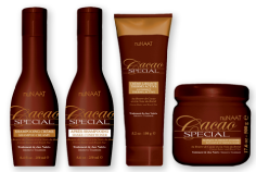 NuNAAT’s Chocolat Special line is designed to restore chemically treated hair’s natural velvety shine and splendor as the unique formula contains Cocoa Butter and Brazil Nut oils to revitalize and restore moisture. The alluring chocolate fragrance is also a special treat for those looking for a little extra self-indulgence.