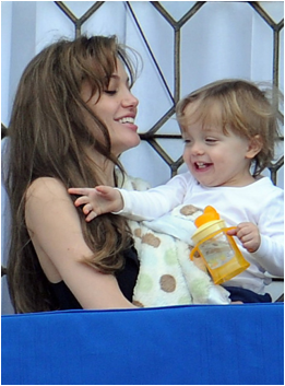 We were tipped off to some adorable photos of celebrity mom, Angelina Jolie and her youngest babies, the Brangelina twins Knox and Vivienne. I am not sure who is who unless the two children are together wearing gender specific clothing, since they are a boy and a girl! They are with their mom on a balcony in Venice, where the whole family is located while Angelina is shooting her new movie, The Tourist. How appropriate since they have been doing a little sightseeing this week according to some websites. These photos were just taken Wednesday and yesterday. Celebrity moms and celebrity babies attract a lot of attention and everyone seems to be especially interested in the products celebrities use for their babies too, not just what they are wearing.