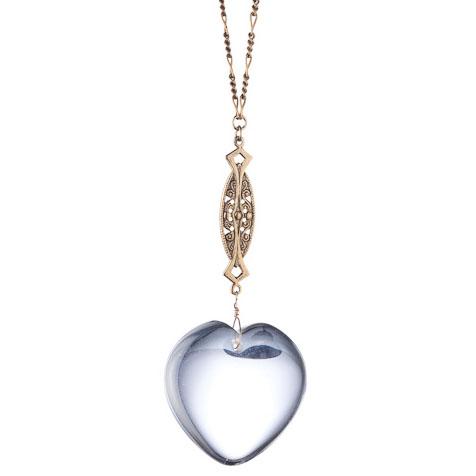 This is a sweet necklace with a clear quartz heart. 28″ 10k gold antiqued chain, clear quartz heart.