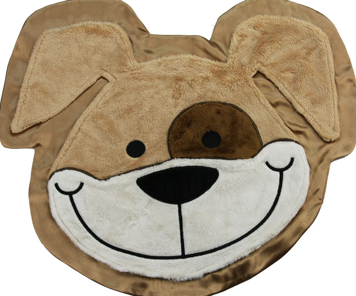 We received Chase the Happy Dog to review and our son loves it. It is soft and furry on one side, just like a plush animal and the other side is a silky satin material that is soft and smooth. I thought it was a perfect combination, a warm, furry side for the winter months and a cool, silky side for the hot summer months. Chase is big enough to look like a long robe or bath towel around our two-year-old, but would make a great cape for older children :-). It is machine washable in cold, tumble dry on low. Chase washed up really nice, remained soft to the touch and just as loveable, if not more so now that he is officially “used”.