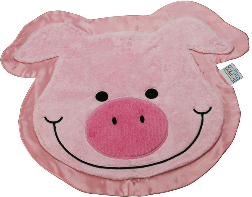 There are four characters in the Happy Blankie line – Giggle, the Happy Pig, which is the face of a pink plush pig with a huge smile. This was Happy Blankie’s first creation. Then came three more smiling friends in the form of more animals – Tumble the Happy Bear, Stomp the Happy Frog, and Chase the Happy Dog.