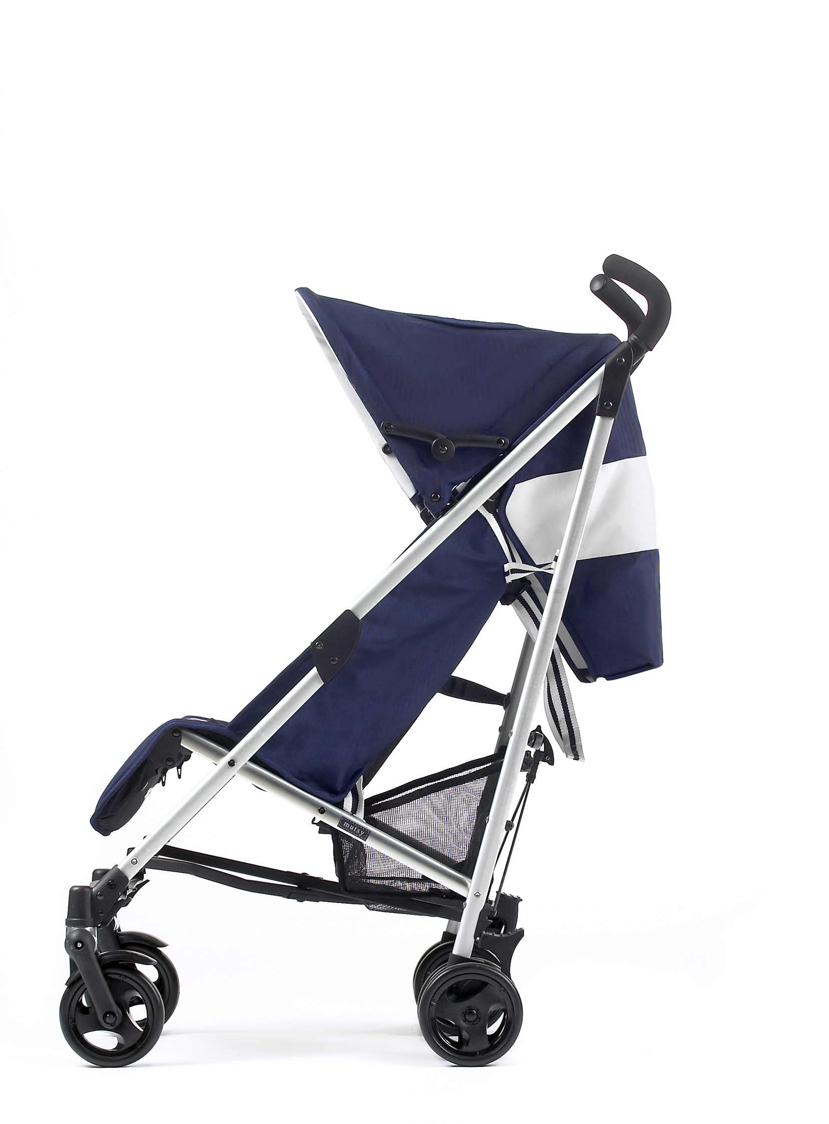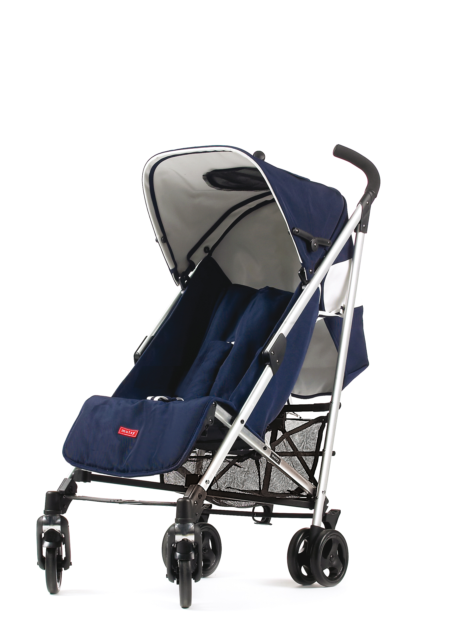 The Mutsy Easyrider, at just 14 lbs., is a stylish, easy to use basic stroller perfect for travelling and everyday use. Easyrider features small swivel wheels at the front with a unique suspension system to help get over curbs or bumps. The back wheels of the stroller are also provided with suspensions for added maneuverability. A large canopy is included and the stroller features an adjustable back with a generous recline. Other features include a 5 point safety harness, extendable leg rest, tall, ergonomic handles and one hand fold. Mutsy’s unmistakable design is evident in the very unique shape of the stroller’s tubing. Suitable for ages 3 months and up, Easyrider is available in Navy and Red. Recommended retail is $169.