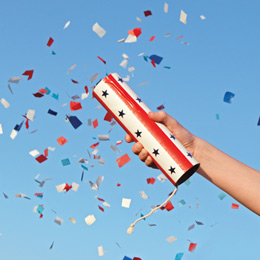 * Confetti Launcher: Fireworks happen only after dark, but this craft creates a pop of color any time of day. Kids pull back on the string to release a shower of tissue paper confetti, then gather it up and refill the launcher again…and again…and again.