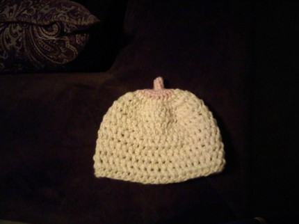 The Boobie Beanie is made of 100% cotton, which those of you who have felt organic cotton, you know its very soft. The fact that it is hand crocheted tells us that it will be very warm too, as hand-made items tend to be.