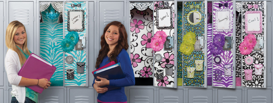 Give your school locker a makeover from basic to beautiful with high-fashion locker decorations that make it easy for you to have an amazing locker in no time! Only LockerLookz gives you the power to express yourself through our unique mix-and-match locker design collections of wallpaper, bins, dryerase boards, flowers, and rugs. And new for 2012: clocks, bows, curtains, and more! Create the locker look that’s just right for you!